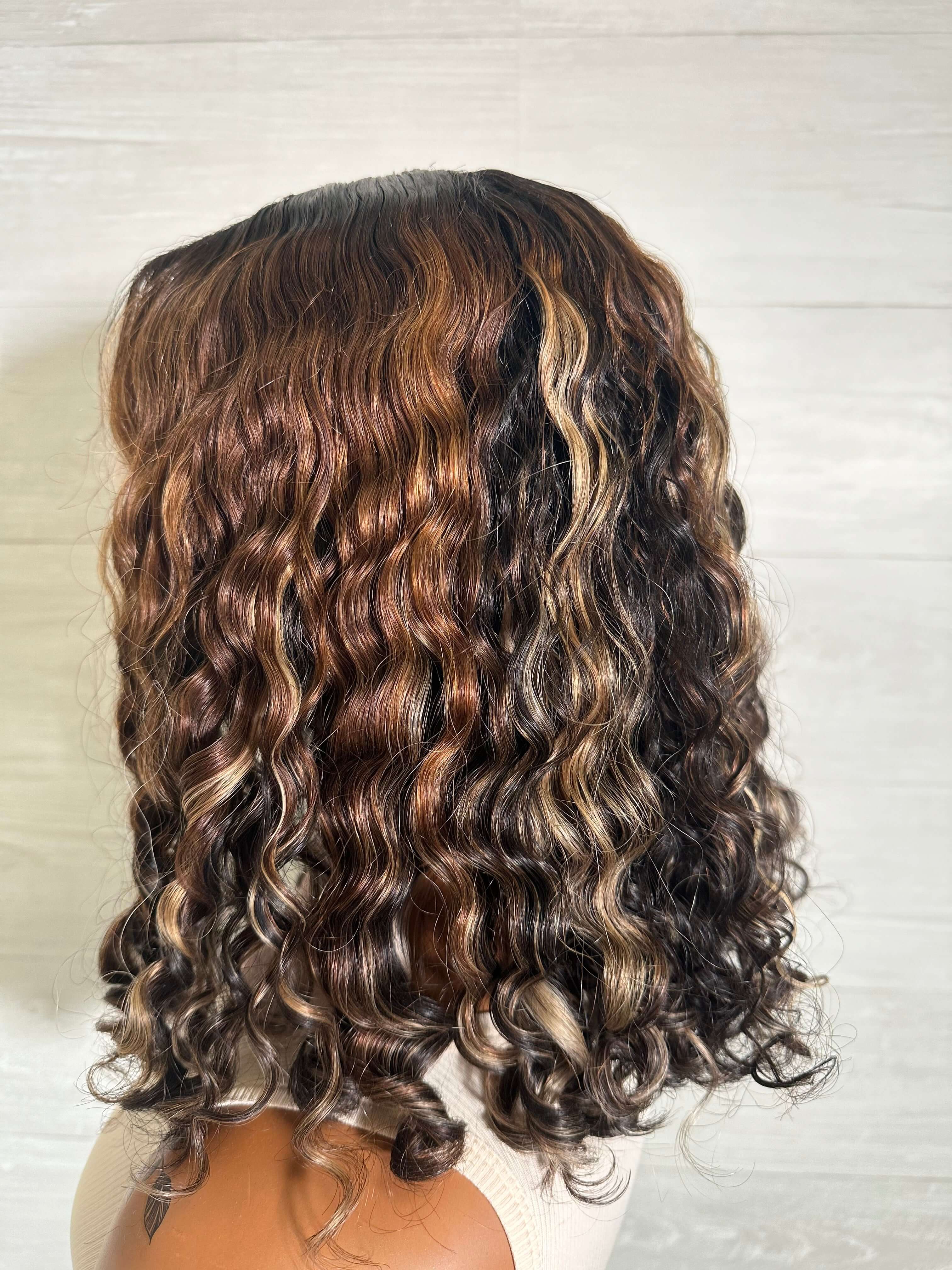 Glueless Deep Wave Highlight Wig – Brown/Blonde HD Lace | 100% Virgin Human Hair, Ready to Wear