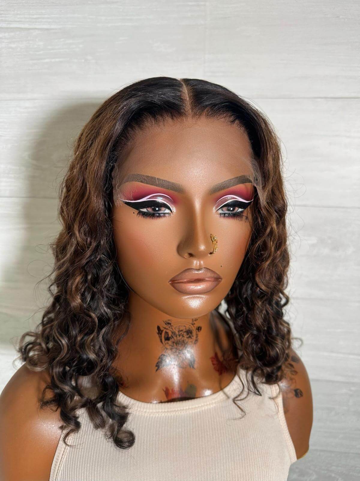 Add effortless style and dimension with the Glueless HD Lace Deep Wavy Wig. This 14-inch wig features soft brown tones with blonde highlights, creating a sun-kissed, natural yet bold look that’s perfect for everyday wear or special occasions.