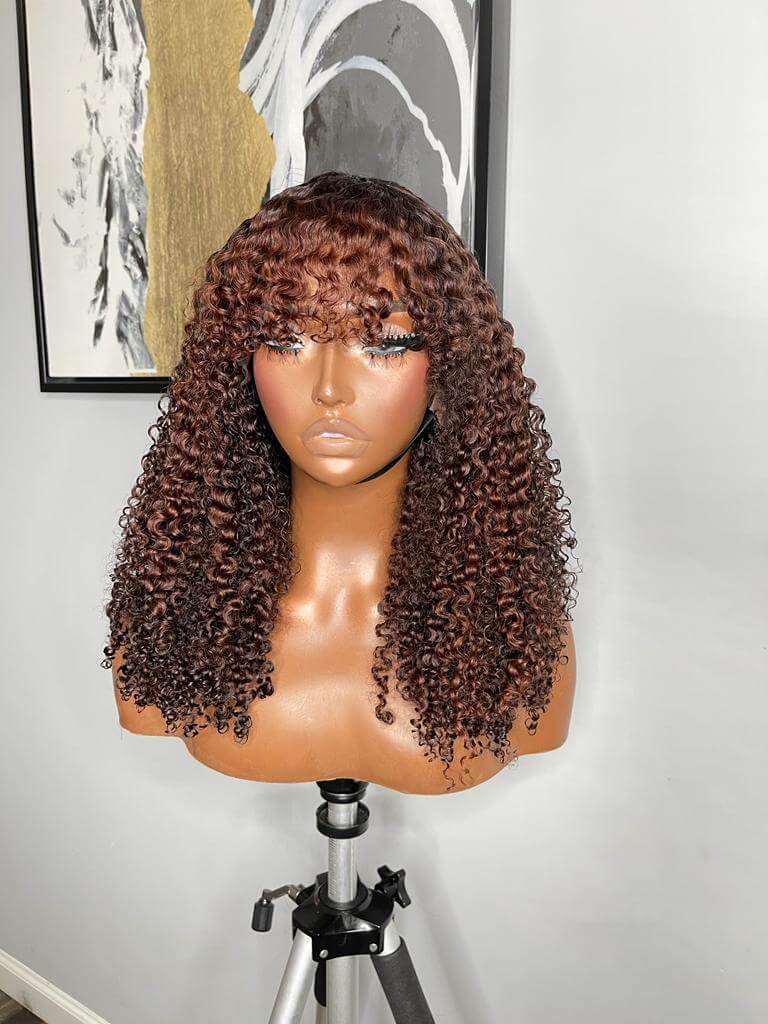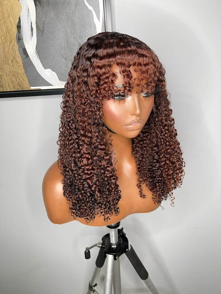 The frontal construction provides styling flexibility, while the curly bangs frame the face beautifully, creating a playful yet polished appearance. Lightweight, easy to wear, and low-maintenance, the Desire Wig is perfect for anyone who wants volume, personality, and natural-looking curls in one unit.